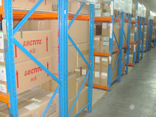 应用最广泛的货架,规格型号齐全、承载范围广,适合于各种仓库,能充分利用空间,选用叉车进行存取货物。